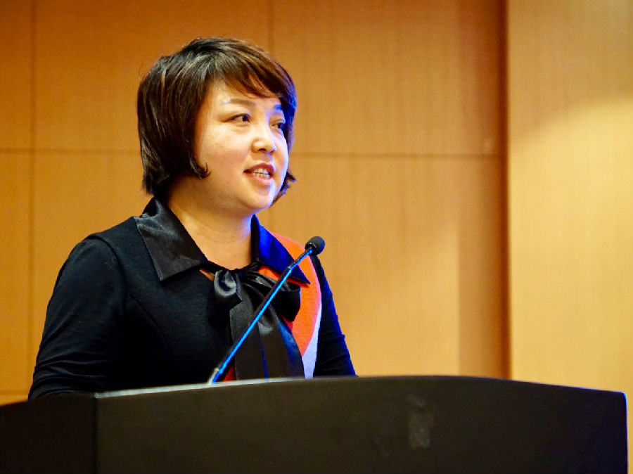 ↑↑↑ 新当选的中国殡葬协会副会长陈景莲作就职发言